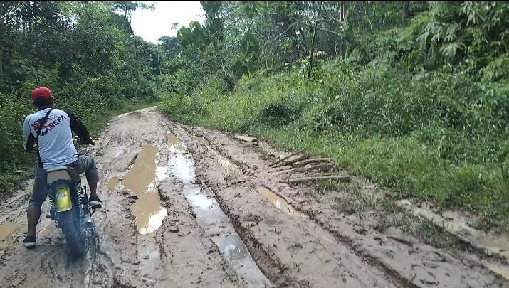 Kondisi Jalan yang parah berlumpur di Dusun V Desa Semangus Kab. Pali, Sumatera Selatan